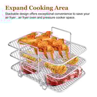 【Detachable three-layer design】The air fryer detachable accessories can be used for 2 air fryers at the same time. You can grill steaks on the air fryer cooking rack while preparing the corresponding side dishes in another air fryer basket for a quick candlelit dinner with your friends.